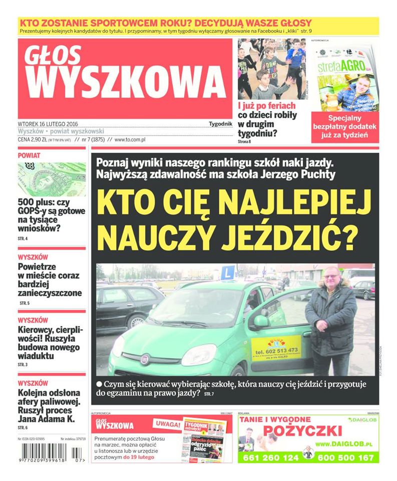 2016. Mamy przyjemność poinformować, że wg Rankingu Szkół Jazdy pow. wyszkowskiego, zamieszczonego w Głosie Wyszkowa – wydanie wyszkowskie Tygodnika Ostrołęckiego – 7/2016 nasza szkoła po raz kolejny zajęła pierwsze miejsce pod względem zdawalności egzaminu za pierwszym razem w zakresie teorii i praktyki na prawo jazdy. Jest to wspólny sukces osób szkolonych oraz doświadczonej kadry szkoleniowej. Niniejszym składam serdeczne podziękowania wszystkim, którzy przyczynili się do tego sukcesu.