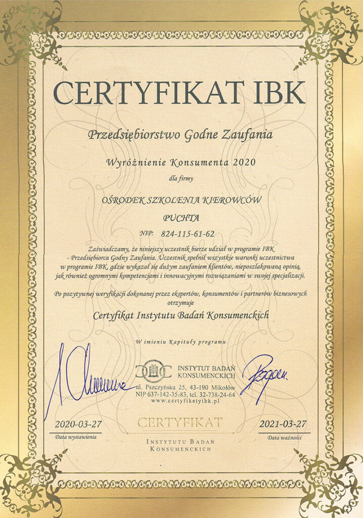 2020. Instytut Badań Konsumenckich powiadomił nas, że otrzymaliśmy Certyfikat PRZEDSIĘBIORSTWO GODNE ZAUFANIA!!!